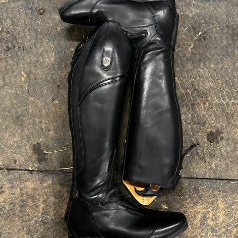 Mountain Horse Active Venice Young ridestøvler i sort læder, størrelse 30/40. Højde 43 cm, læg 33-34 cm. Designet til ridning med fokus på komfort og holdbarhed. Super god stand med original kasse og oppustelige indsatser.