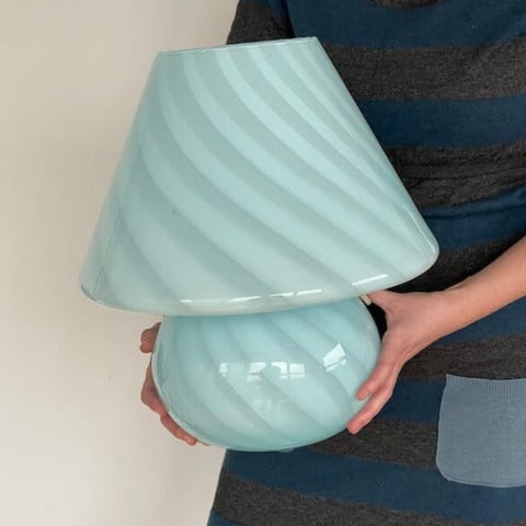 Fineste vintage lampe fra 1970'erne. Perfekt eksempel på den smukke, klassiske Murano mushroom lampe i den sjældne lyserøde farve. Meget smukt udført med detaljeret swirl og fin flæsekant i afslutningen øverst i glasset. Lampen er mundblæst i et stort stykke og er et lille kunststykke i sig selv.