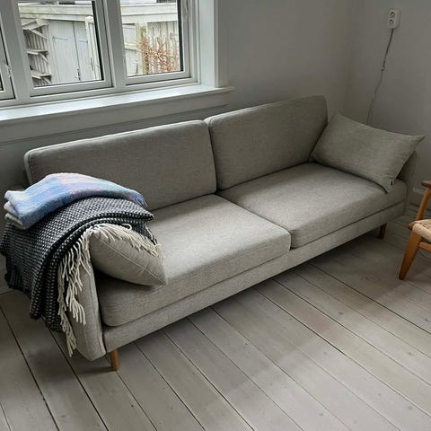 Super nice and timeless Bolia 'Scandinavia Remix' sofa is light grey, has been kept in a non-smoking home with no stains or signs of wear, selling due to relocation. I have the receipt. Bid :)