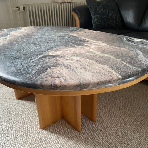 Klassisk retro sofabord med natursten – 146 × 81 cm
