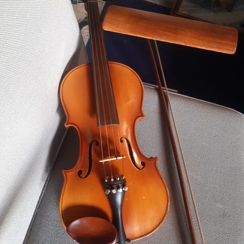 Jean Baptiste Vuilllaume model lavet under direktion de Leon Bernadel med sølvmonteret bue og luftskulderpude. Med nyt sæt dominantstrenge. I gammel violinkasse.