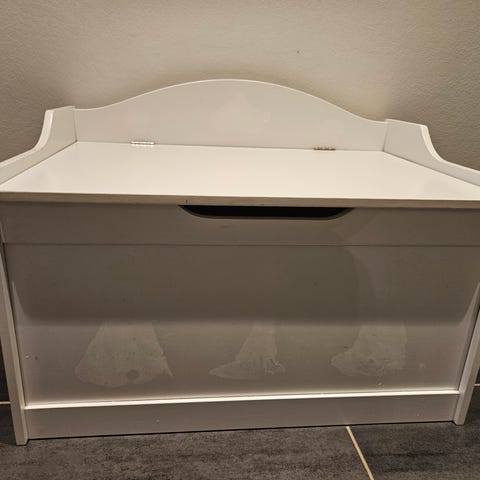 En opbevaringsbænk i hvid med masser af plads. Perfekt til store ting / legetøj.