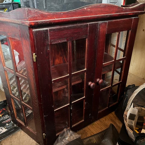 Afsyret væghængt vitrineskab. God stand. 4 velfungerende skuffer.