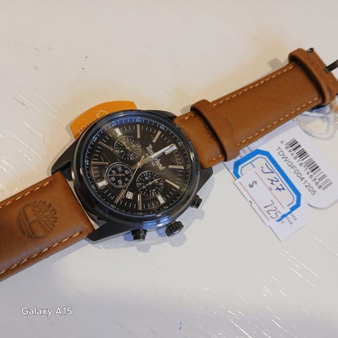 Timberland herreur med urskive og brun læderrem. Uret har chronograph-funktioner og en rund urskive med tydelige markeringer. Remmen er af ægte læder med Timberland-logo præget.