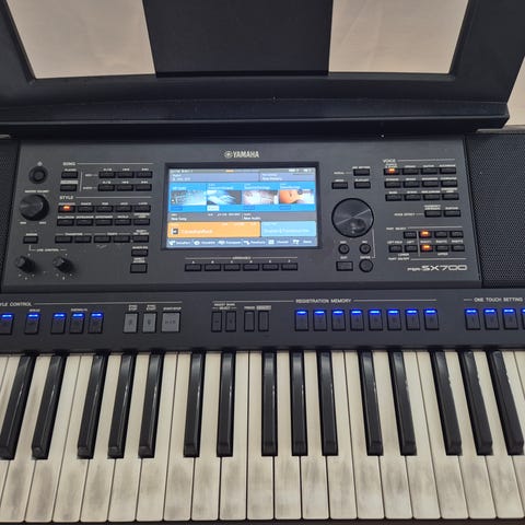 Yamaha DX9 fra 83/84. Sparsomt brugt,og har tilbragt det meste af tiden i den solide flightcase. Den virker, men trænger efter 40 år til et nyt batteri. Det originale kassettebånd med extra lyde er gået tabt, men kan hentes på nettet. Flightcase indvendige mål: 102+32,5cm
