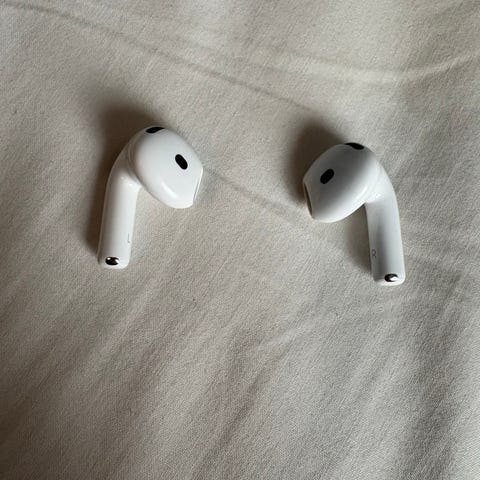 Apple AirPods trådløse høretelefoner i hvid farve. Kommer med opladningsetui. Designet til trådløs brug med Bluetooth-forbindelse.