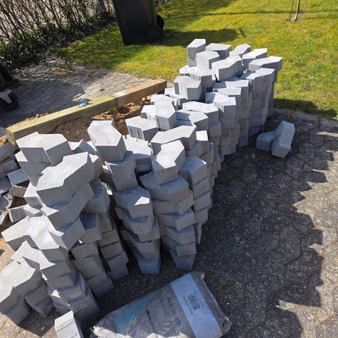 Pæne SF sten (6 cm) gives væk. Der er ca. 80 stk. Ingen kantsten.