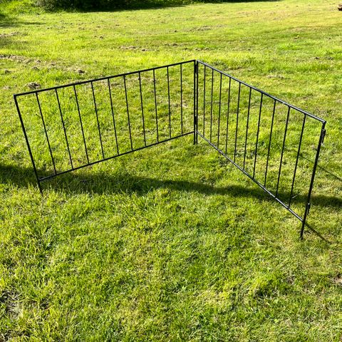 Vi sælger vores børnehegn til pejs, da vi ikke længere skal bruge det. Det består af 7 elementer, hvor det ene er porten. Der medfølger hængsler til montage :)