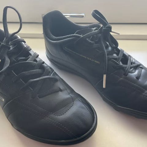 Kunstgræs fodboldsko fra Warrior Gambler til børn. Meget velholdte, da de næsten ikke er brugt. Undersiden er ikke slidt.