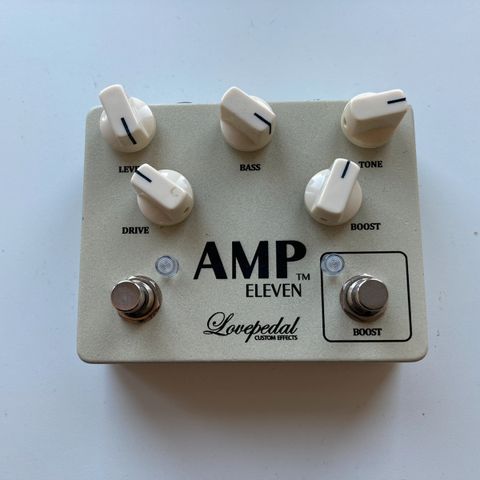 Lovepedal Amp Eleven (big box). Varm low/midgain OD og boost. Chris Buck har en testvideo på YouTube.