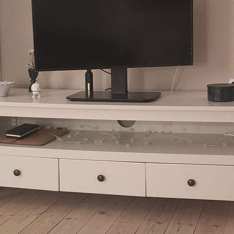 TV stand til et bord. Brugt til en 120 cm bredt tv som nu er monteret på væggen.