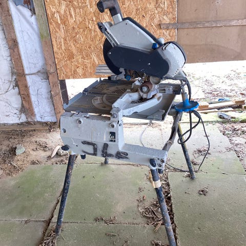 Elu kap og bordsav med bord med ruller for lange emner. Der medfølger div ekstraudstyr gammel men god