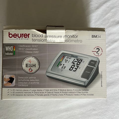 Beurer BM 28 blodtryksmåler digital med manchet til overarmen. Enheden har et LCD-display og er designet til at måle blodtryk og puls. Farve: hvid og grå.