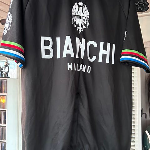 Bianchi Milano cykeltrøje i størrelse XL, sort farve med rød krave