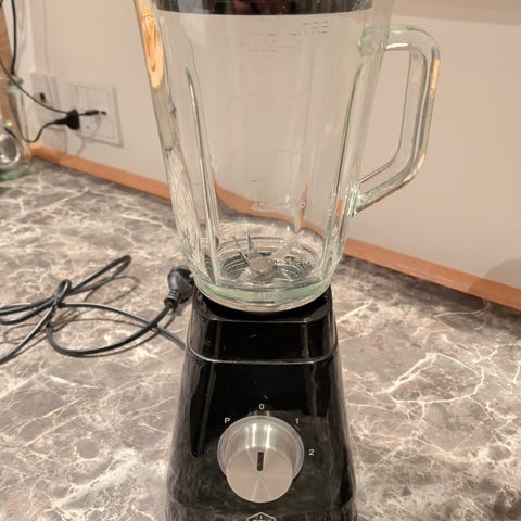 OBH Nordica blender med stålbase og glasbeholder. Udstyret med drejeknap til forskellige hastigheder og funktioner. Velegnet til blanding og mixning af fødevarer.