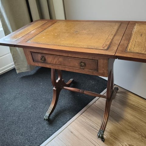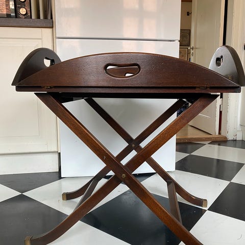 Sæt med tre sidesborde i valnøttre af Bevan Funnel Newhaven, Storbritannien, fra omkring 1960–1970, med læderdetaljer, i god brugt stand med mindre alders- og slidmærker, dimensioner: bord1 57 × 51 × 35 cm, bord2 54 × 43 × 33 cm, bord3 51 × 37 × 31 cm. Klik på den blå "gå til varen" knap, for at købe eller byde på denne vare. Den samlede pris vil blive vist inden du afgiver dit bud.