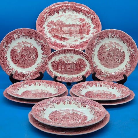 Vajilla de menaje de servicio fra den eksklusive engelske porcelænsfabrik Royal Semi porcelain - MING, fremstillet i Ridgway, England.