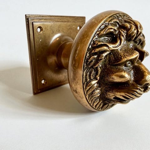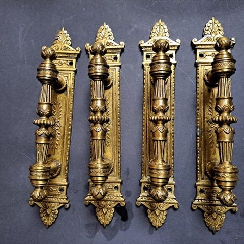 Et sjældent og eksklusivt sæt af to antikke støbejernsdørhåndtag med deres originale stjerneformede bagplader, der stammer fra omkring 1920.