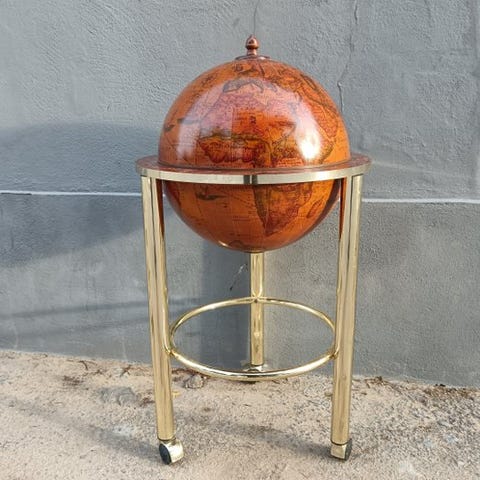 En vinkøler kronet med en stor globus, med alle detaljer, som åbner sig for at glæde de mest nysgerrige.