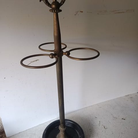 Paraplystativ fra Li Puma i messing, Italienisk fremstillet, cirka 1950–1960, i god stand med tegn på alder og patina. Klik på den blå "gå til varen" knap, for at købe eller byde på denne vare. Den samlede pris vil blive vist inden du afgiver dit bud.