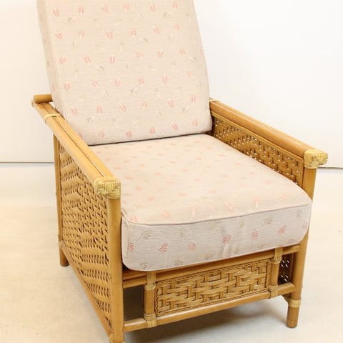 Bambusstol fra Indonesien, sandsynligvis fra anden halvdel af det 20. århundrede, dybde 90 cm, højde 103 cm, bredde 67 cm, siddedybde 48 cm, i god brugt stand med mindre tegn på ælde og plettede, og rælingen kan sænkes ved transport. Klik på den blå "gå til varen" knap, for at købe eller byde på denne vare. Den samlede pris vil blive vist inden du afgiver dit bud.