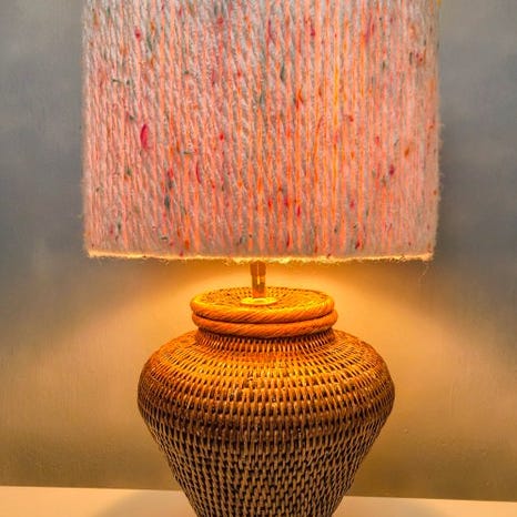 Vintage stil, håndvævet rattan bordlampe.