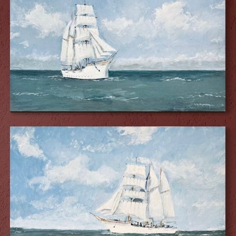 Ovalt oliemaleri på lærred, maroufleret på karton (flere restaureringer).