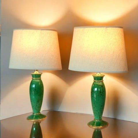 Sjældent italiensk (muligvis fransk afstamning) basket-lampe-sæt fra 1920’erne–1930’erne bestående af en central lampe og to sidestykker i massesbrun og krystal, i meget god stand med fornyet elektrisk anlæg og klare, transparente krystalsten, dimensioner: hovedkurv Ø32 cm, kropshøjde 49 cm. Klik på den blå "gå til varen" knap, for at købe eller byde på denne vare. Den samlede pris vil blive vist inden du afgiver dit bud.