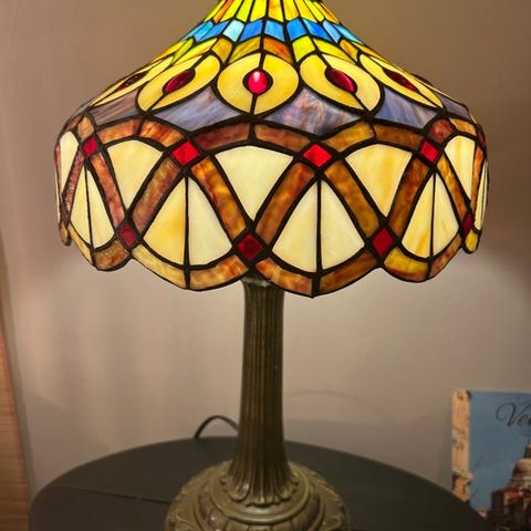 Teknik: Håndloddet Tiffany-glasarbejde med metalramme