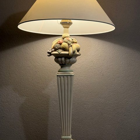 Luxuriøs lampe fra Kullmann - Tyskland. Høj kvalitet med smukke farvetoner i foden. Udstyret med original lampskærm. Alt fungerer optimalt. Sparepære og LED-venlig.