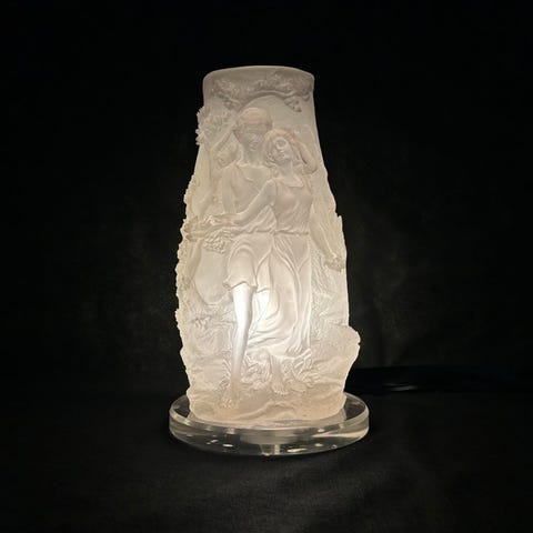 Lampe bouillotte i Louis XVI-stil, ældre og elegant. Foden har fem lysestager beklædt med en justerbar skærm i rød, foldet stof. Tidligere var det meget praktisk at kunne justere lyset (lysestagen), for eksempel når man skulle læse bøger. Derfor blev denne lampe ofte brugt i biblioteker og på skrivebordet i en personlig skab. Og i vores tid er disse lamper fuldt funktionelle og uundværlige for dem, der ønsker at tilføje et æstetisk og historisk præg til deres hjem.