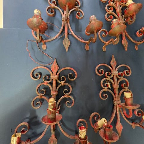 Vigtige væglamper med blomsterprint i forgyldt metal, i fremragende stand som vist på billederne, der viser mål, vægt og tilstand. De stammer fra en betydningsfuld ejendom i Napoli-området. De sælges som værende klar til revision, selvom de er adskilte og fungerer.