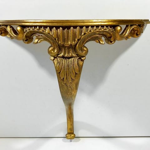 Dette er en vintage vægkonsol af messing med en spejlende overflade fra midten af det 20. århundrede (Hollywood Regency-stil).