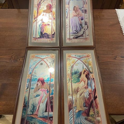 Vægspiegel (2) - Alphonse Mucha, 'The Four Seasons', 1970-1979. Signeret.