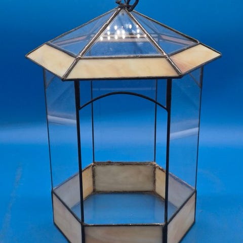 Loftlampe med papegøje i Tiffany-stil, fremstillet i Spanien, af rudeminerende glas og metal, i god brugt stand, dimensioner lampe 60 × 40 × 20 cm og papegøje 20 × 10 × 10 cm, vægt 1 kg, E14-fatning, årstal 1990–2000. Klik på den blå "gå til varen" knap, for at købe eller byde på denne vare. Den samlede pris vil blive vist inden du afgiver dit bud.