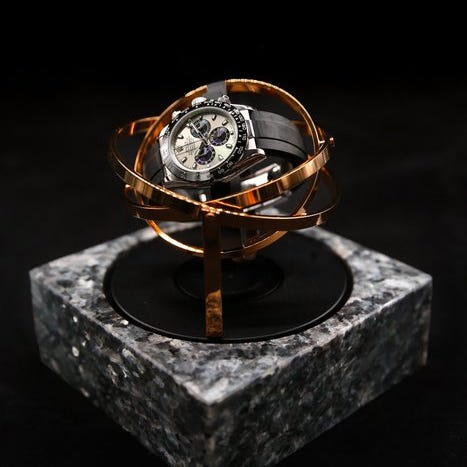 Gyrowinderen er skabt til perfekt at efterligne bevægelsen af en Tourbillon, en af de vigtigste opfindelser i urhistorien. Vi bringer dig en højteknologisk urwinder, der holder dit ur oppe at køre og præsenterer det på en elegant måde, uanset om det er en Rolex Daytona, Submariner, Omega Speedmaster, Patek