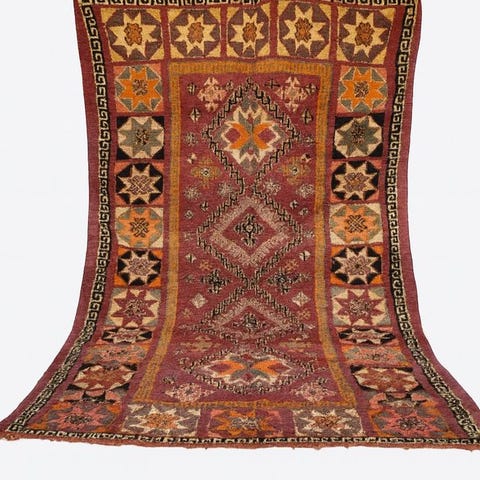 Hvert Boujaad-tæppe fortæller en historie: væverne udtrykker deres kreativitet gennem traditionelle symboler, ujævne linjer og en stil, der blander boheme, etnisk og chic.