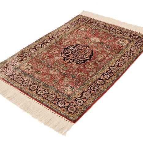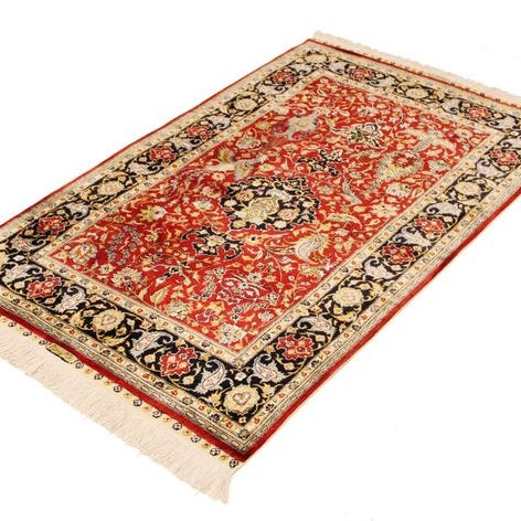Tilbudt er et ægte håndknyttet Hereke silketæppe af 100% ægte silke.