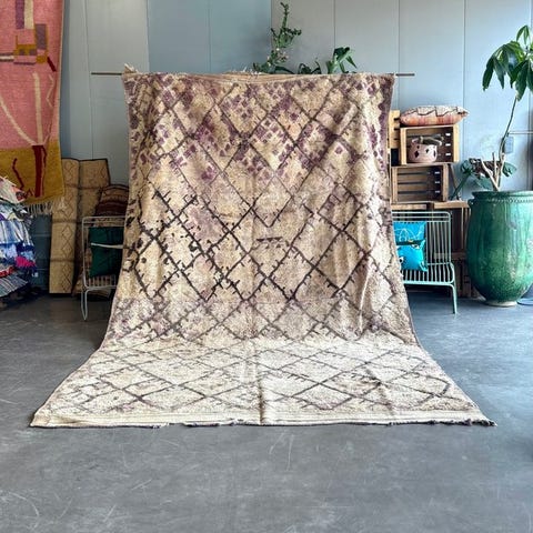 Dette autentiske marokkanske Talsint-tæppe stammer fra Talsint-regionen i det sydøstlige Marokko og daterer sig fra 1970'erne til 1980'erne. Helt håndvævet af Berber-kunstnere er dette tæppe lavet af naturligt fåreskind udelukkende ved hjælp af traditionelle teknikker, der er videreført gennem generationer.