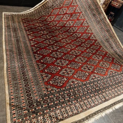 Til tilbuddet står et smukt Buchara Art Deco orientteppich.