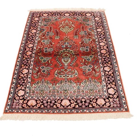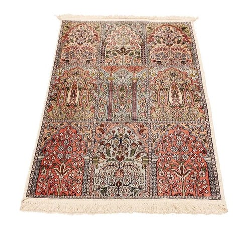 Der tilbydes et ægte håndknyttet Kashmir silketæppe.