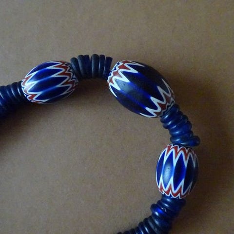 Perler af denne art fra Djenné-udgravninger stammer fra det 9. til 13. århundrede. De fleste er lavet i Indien og handlet til Vestafrika og Asien af islamiske handlende. Nogle kan være lavet i Afrika.