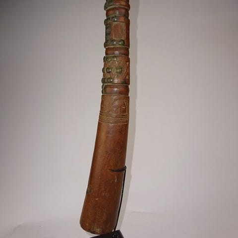 Palmevinrør af Kuba (Shoowa-Kuba) fra Congo, træ, 9,5 cm bred, 22 cm høj, 10 cm dyb, vægt 410 g, un-signeret, i fremragende stand, leveres uden stand, provenance Koloniaal verzameld, ex missionarissen Passionisten Kortrijk. Klik på den blå "gå til varen" knap, for at købe eller byde på denne vare. Den samlede pris vil blive vist inden du afgiver dit bud.