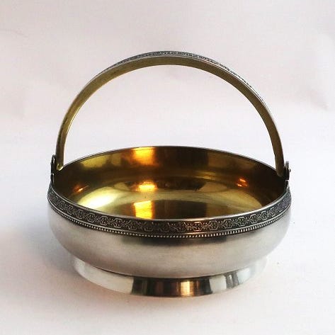 Pudseflaske fra det 19. århundrede, sandsynligvis af orientalsk oprindelse. Halvdelen af genstanden er i sølv, den anden i kobber. Sølvdelen er rigt gravet og dekoreret med mønstre. Jeg har testet sølvet med en specifik test, hvilket bekræftede materialets ægthed.