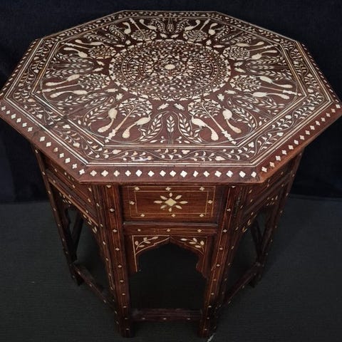 Et japansk lavt bord i sort lakering fra midten af det 20. århundrede, 152 cm bredt, 91 cm dybt og 32 cm højt, dekoreret med stiliserede bølger og tre flyvende ænder i Nashiji; i meget god stand med mindre slid, leveres med originalt certifikat for ægthed. Klik på den blå "gå til varen" knap, for at købe eller byde på denne vare. Den samlede pris vil blive vist inden du afgiver dit bud.