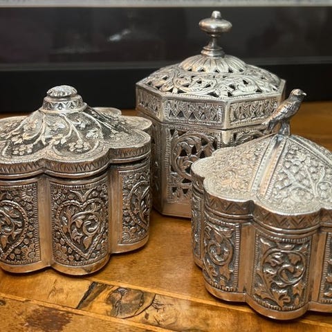 Stor sølvboks 925 emaljeret lavet i Indien, i regionen Rajasthan.