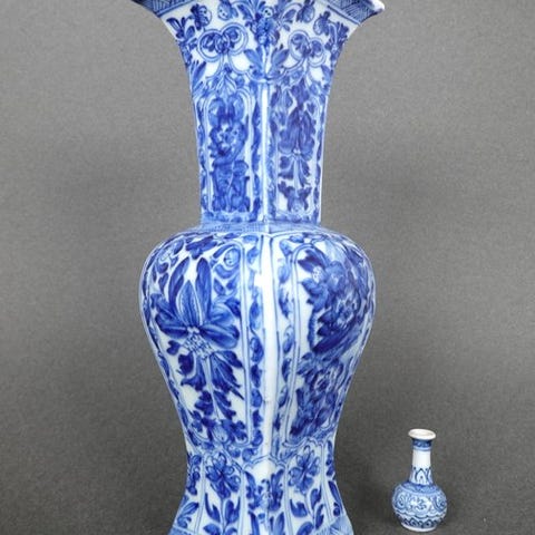 Vase - Porcelæn - Kina - Kangxi (1662-1722) - Inkluderer original låg!