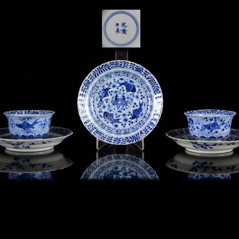 Et fint kinesisk porcelænsæt fra Yongzheng-perioden (1723-1735), cirka 1730, bestående af tre tekopper og underskåle, underskålene har en diameter på 9,6 cm, tekopperne 5,8 cm i diameter og 3,3 cm i højden, i meget god stand uden chips eller sprækker, fra privat samling, tempeldecor. Klik på den blå "gå til varen" knap, for at købe eller byde på denne vare. Den samlede pris vil blive vist inden du afgiver dit bud.