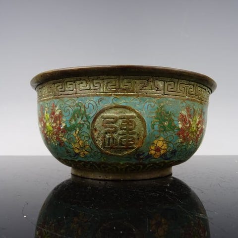 Enorm kinesisk bronze Cloisonné-emaille skål fra Qing-dynastiet 1644-1911. Meget smukt håndlavet med Foo-hunde dekoration. Meget stor størrelse og meget særlig skål.