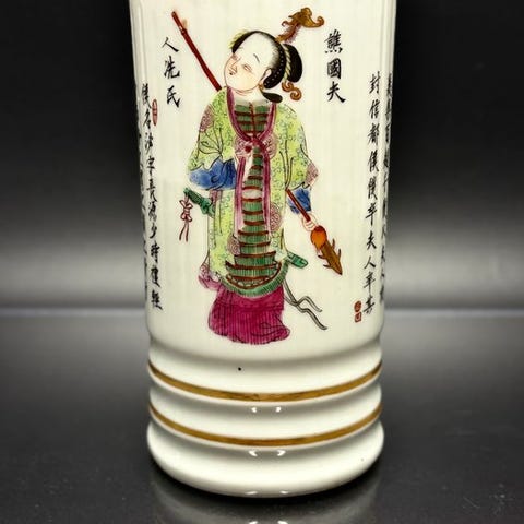 En meget smuk antik kinesisk porcelæns børsterenser fra slutningen af 1800-tallet. Runt omkring dekoreret med forskellige blomster. Meget smuk i farven. Og et sjovt design. Bunden er forsynet med Qianlong sekskarakter mærke.